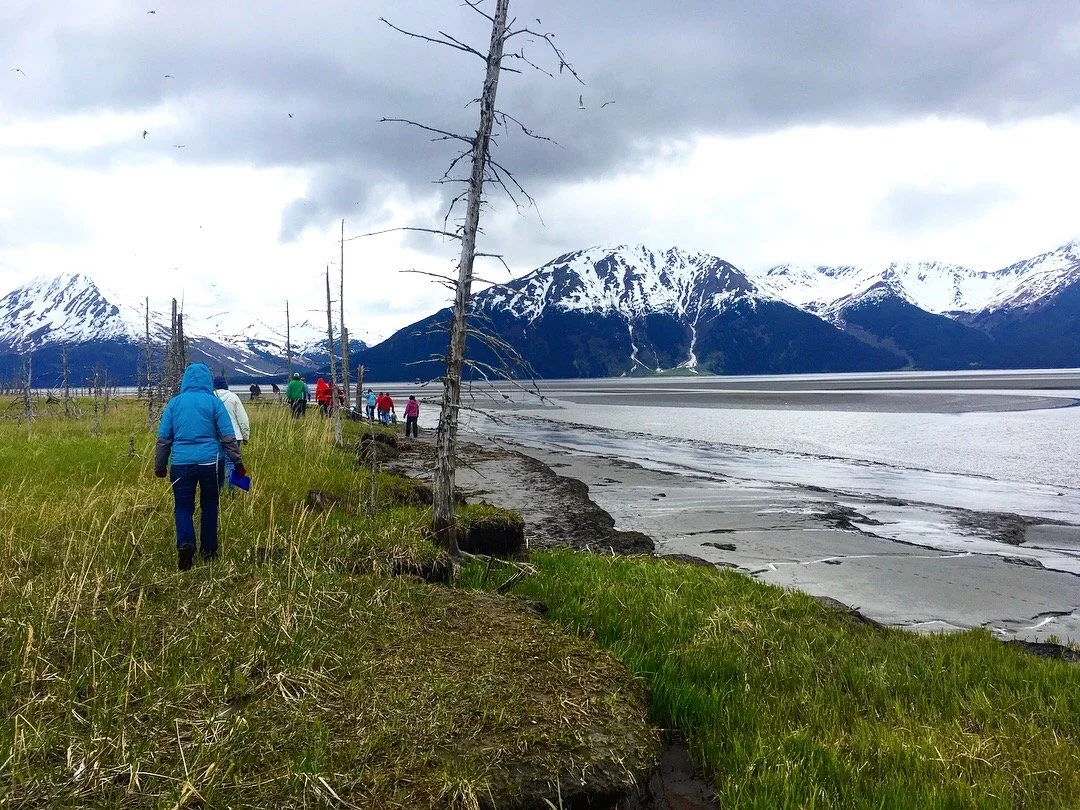 Next, we travel south along the Turnagain Arm, stopping along the way to examine evidence of how plate tectonics is shaping Alaska. We’ll spend 2 nights in Portage Valley, where we will base camp and hike to Byron Glacier and Portage Pass learning about glacial processes and forest succession. We’ll also make a stop in Whittier to discuss tsunami science and preparedness.